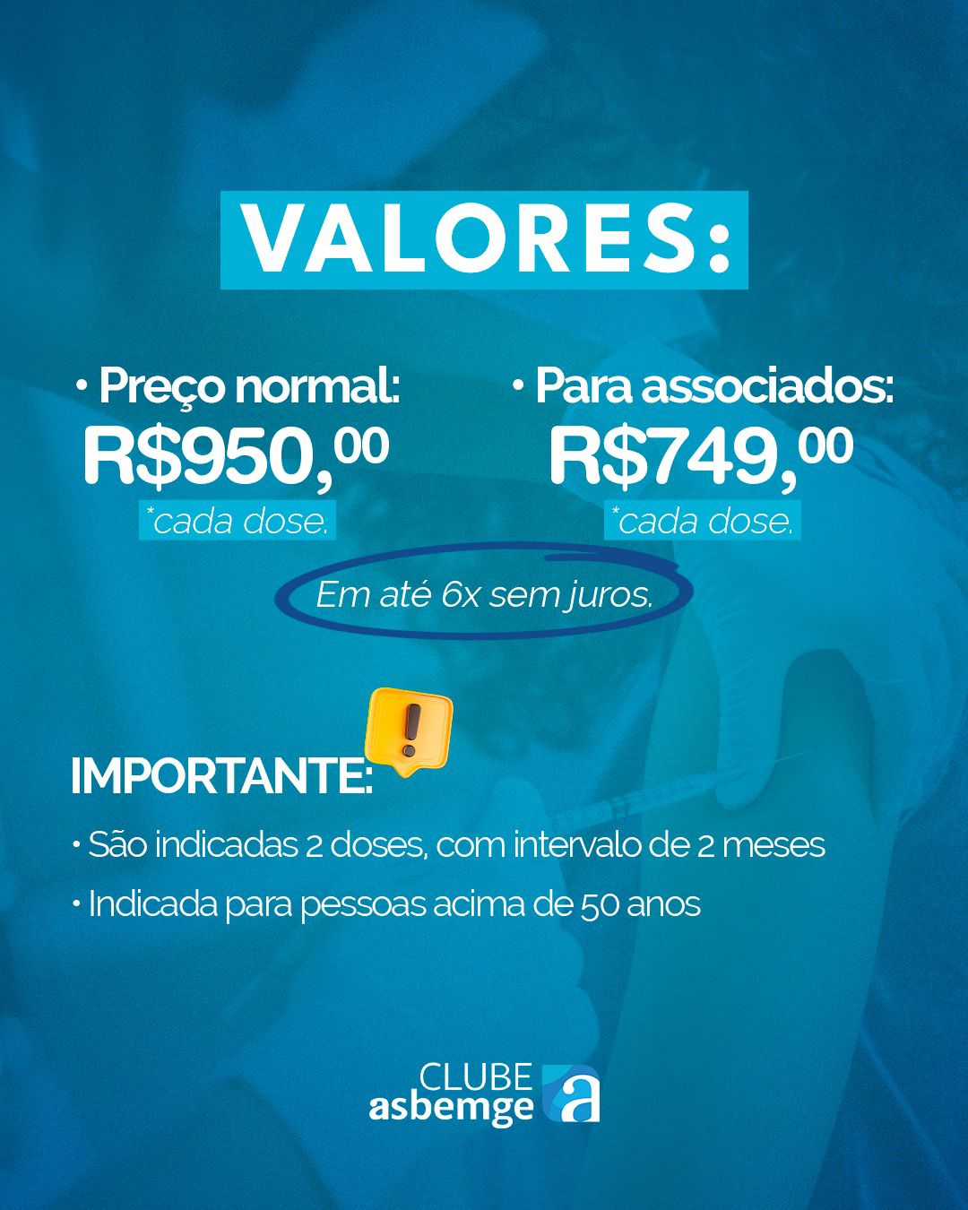Valor para associado: R$750,00 (cada dose)